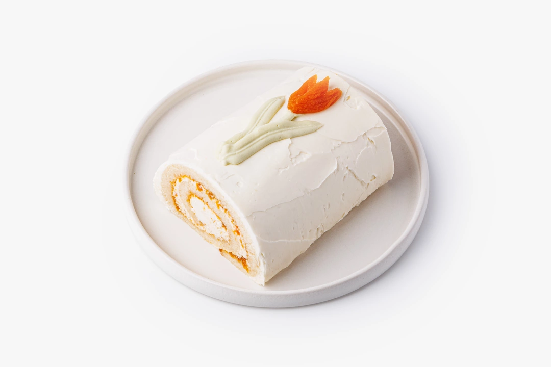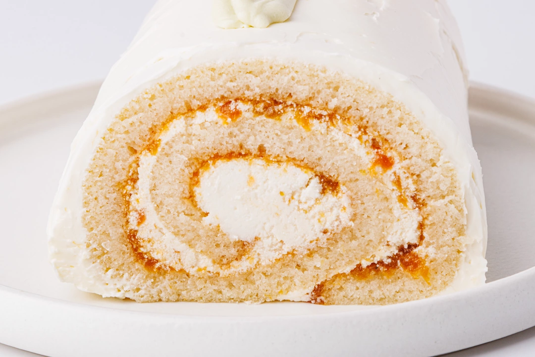 Рулет с абрикосовым джемом и сметанным кремом. Основа на кефире делает бисквит мягким и пышным. В начинке джем из абрикосов и сливочный крем, вкус дополнен курагой и порошком чая матча.