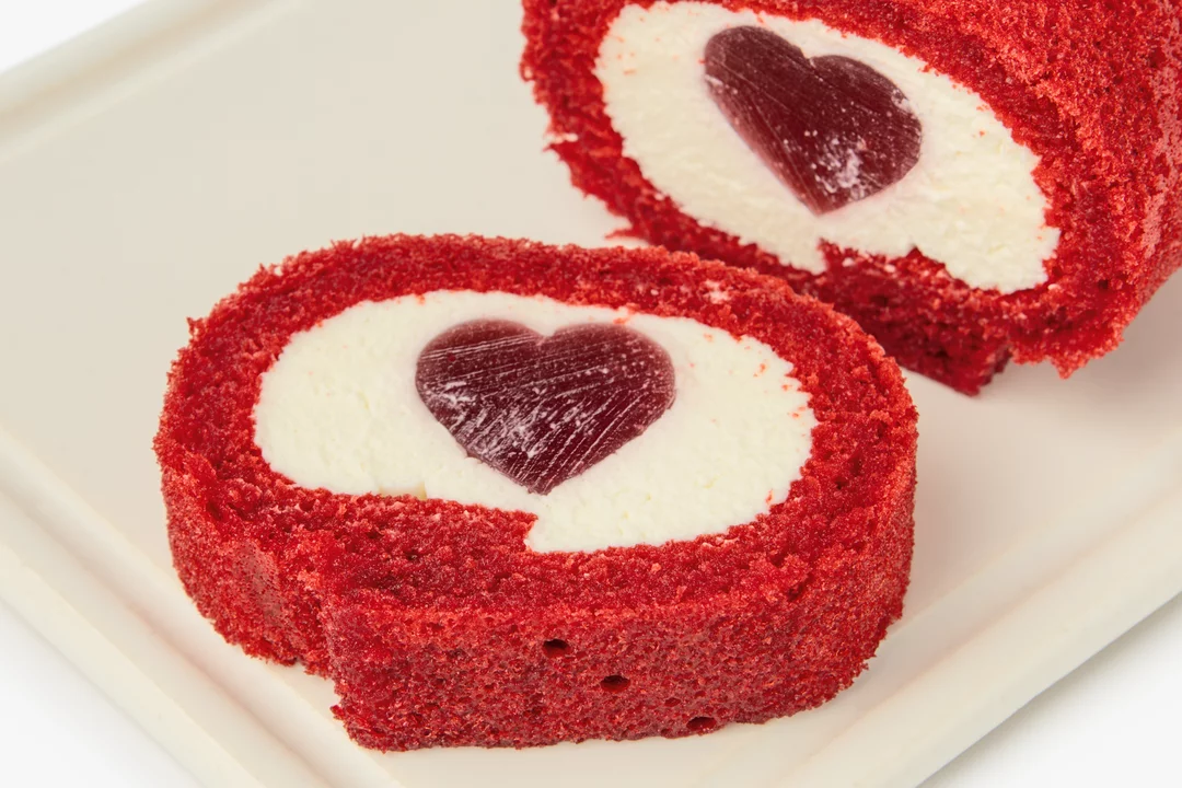 Праздничный бисквитный рулет с малиново-кремовой начинкой — это десерт с романтичным названием и нежным ягодным характером. Его изюминка — желейное сердце из малинового пюре в центре, которое видно на срезе каждого кусочка. Крем на основе творожного сыра и сливок с натуральной ванилью получается мягким и гладким, с деликатной сладостью. А ягодное пюре придаёт рулету лёгкую кислинку. Подойдёт на случай, когда хочется порадовать себя или близкого человека оригинальным десертом.