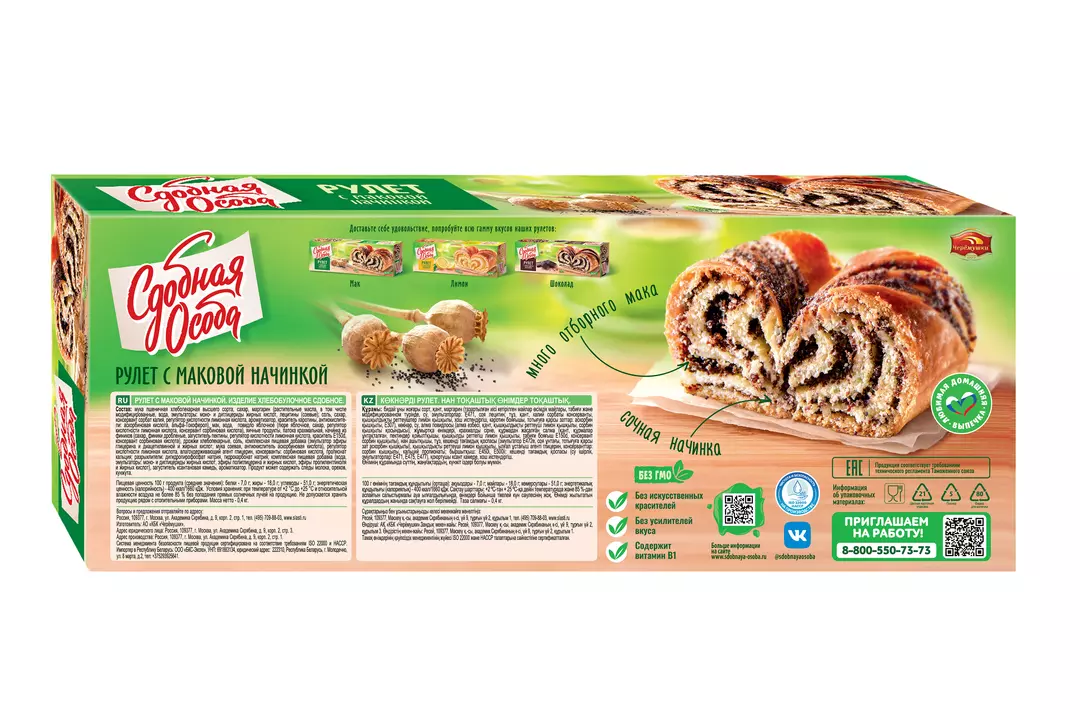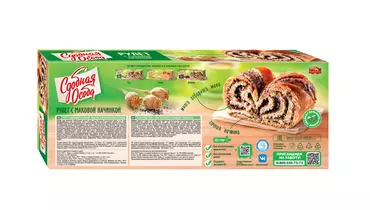 Рулет с маковой начинкой является одним из самых популярных лакомств среди линейки Сдобная особа. Он приготовлен из нежного дрожжевого теста с большим количеством неповторимой маковой начинки. Оригинальная закрутка сохраняет его мягким и сочным. Страна производитель-Россия