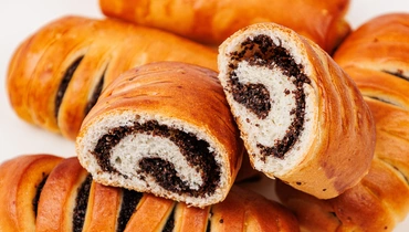 Небольшие рулетики из дрожжевого теста с маковой начинкой. Тесто мягкое, чуть сладковатое, без излишней сдобности. Удобный формат — в упаковке несколько рулетиков к завтраку или для небольшого перекуса в течение дня.