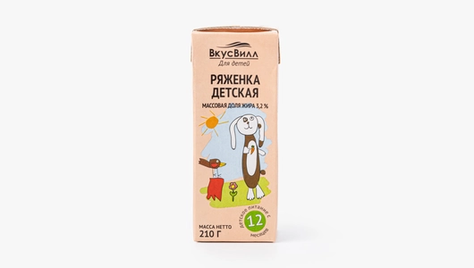 Кисломолочный продукт из цельного и обезжиренного молока, изготовленный с добавлением закваски. Эта ряженка отличается от обычной более низким уровнем кислотности, благодаря которому вкус продукта смягчается, поэтому дети пьют его охотнее. Рекомендован для питания детей с 12 месяцев.