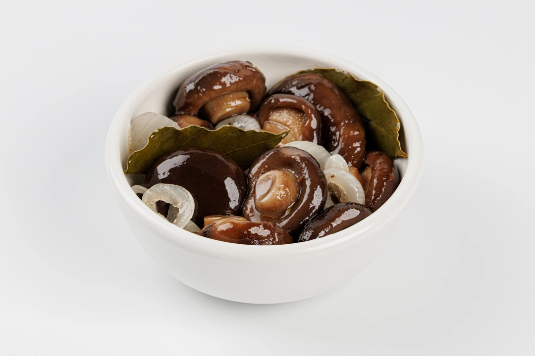 Охлажденный грибной салатик, обладающий оригинальным, слегка пикантным вкусом. Его готовят из отборных грибов шиитаке с добавлением репчатого лука, чеснока, специй, пряностей и прочих ингредиентов. Шиитаке – это деликатесные азиатские грибы, богатые калием, медью, фосфором, селеном, витаминами (А, D, В2, В5, В6, РР) Страна производитель-Россия