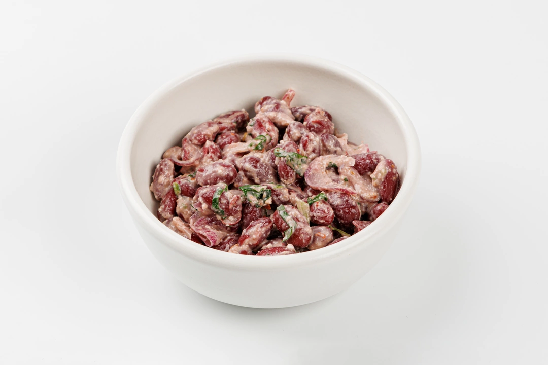 Грузинская классика с насыщенными специями и ореховым акцентом. Мягкая консервированная фасоль сочетается с хрустящим красным луком и дроблёными грецкими орехами. Нерафинированное кахетинское масло придаёт аромат дымка, а винный уксус — лёгкую кислинку. Свежая кинза, чеснок и сванская соль с хмели-сунели создают яркий ароматический букет с умеренной остротой. Готовый салат можно подавать сразу — он хорош как самостоятельная закуска или гарнир к мясу. Просто перемешайте, чтобы масло и специи равномерно пропитали фасоль и насытили ароматами.