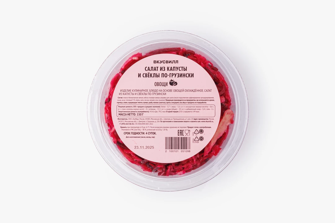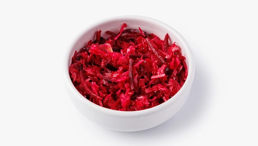 Хрустящая капуста и сладковатая свекла в ароматной заправке — простой, но выразительный салат с характером. Острота перца чили и чеснока гармонично сочетается с лёгкой кислинкой заправки и сладостью свеклы. Такой салат хорош как самостоятельная закуска или дополнение к мясным блюдам — он напоминает о гостеприимных грузинских застольях, где даже простые ингредиенты превращаются в яркие вкусовые впечатления.