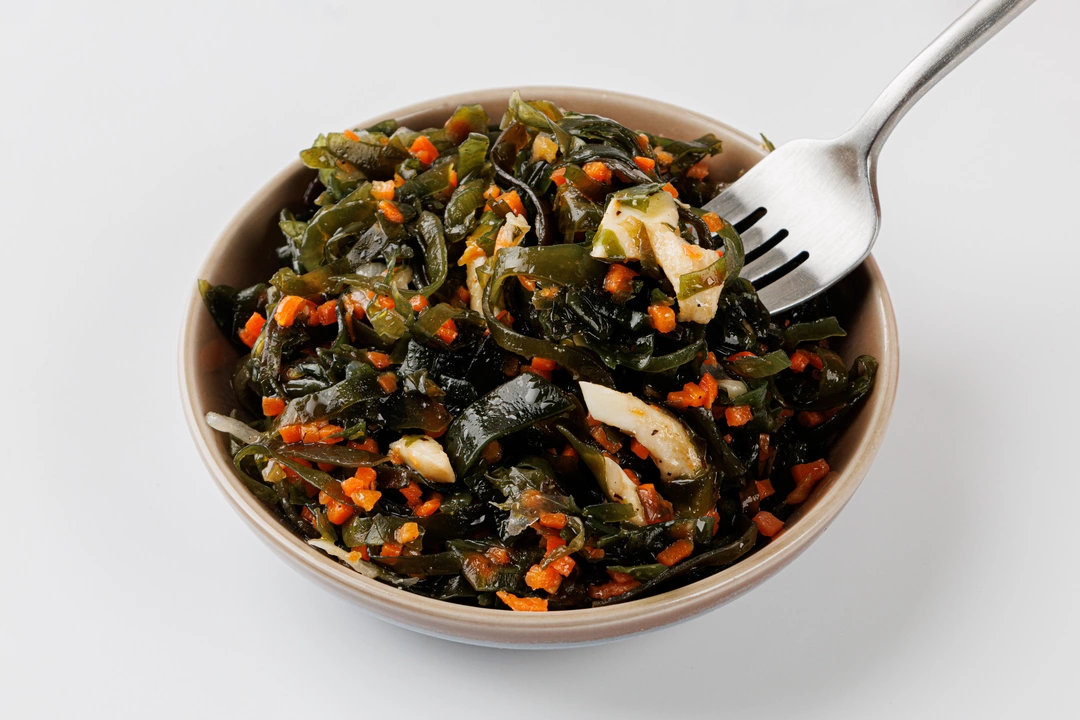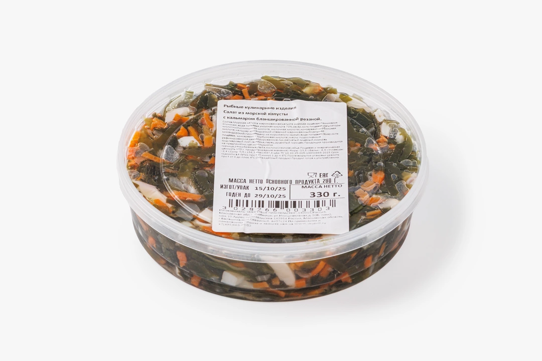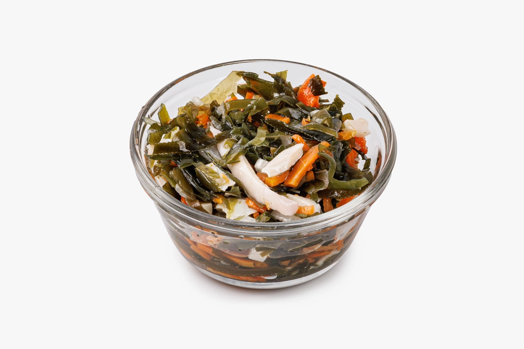Традиционный азиатский салат из ламинарии с нежными кусочками маринованного кальмара. Сушёные овощи и щепотка приправ добавляют ему сладковатые ноты с лёгкой остротой. Морская капуста богата йодом и клетчаткой, поэтому салат разнообразит ваш рацион и поможет его сбалансировать. Он хорош как самостоятельная закуска или дополнение к рису и морепродуктам. Продукт продаётся на развес и готов к употреблению.