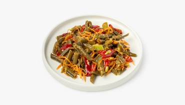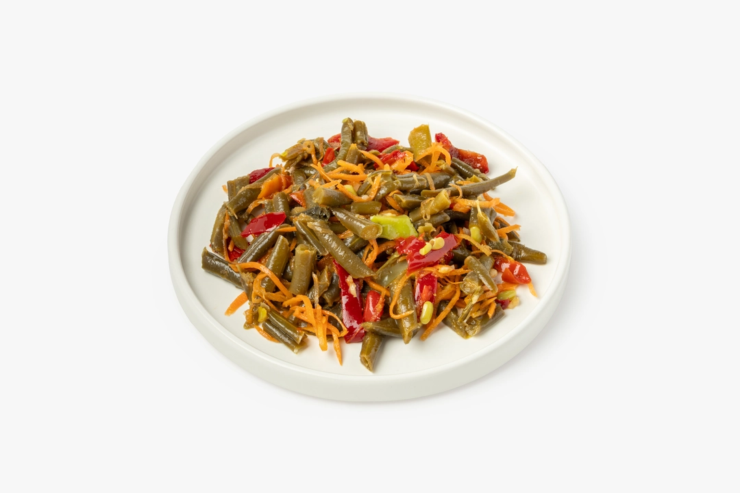 Стручковая фасоль с болгарским перцем и морковью — это готовый салат с лёгким азиатским акцентом. Хрустящие овощи сохраняют упругость, а соевый соус и рисовый уксус добавляют им пикантную солоноватость. Кунжутное масло придаёт мягкий ореховый оттенок, а смесь специй создаёт тёплый пряный фон без излишней остроты. Салат хорошо дополнит мясные блюда, его также можно подавать как самостоятельную закуску.