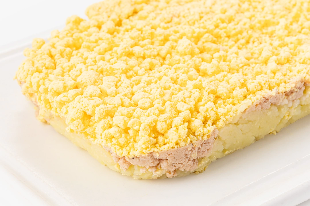 Любимый с детства праздничный салат вполне подходит для того, чтобы стать обедом или ужином даже в будни. Мы приготовили «Мимозу» по классическому домашнему рецепту, в качестве рыбной прослойки выбрав ароматную и нежную горбушу.