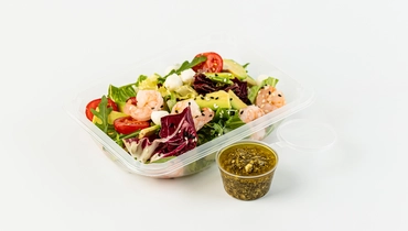 Свежий средиземноморский микс, в котором россыпь белоногих креветок сочетается с кремовым авокадо идеальной зрелости и зеленью. Всё в этом салате собрано в нужных пропорциях. Коктейльные креветки, мягкие шарики моцареллы и спелый авокадо создают насыщенную, но нежную основу. Черри, рукола и салатный микс добавляют яркость и хруст. А песто с орехами и базиликом дополняет вкус, не заглушая ингредиенты. Завершают картину чёрно-белые кунжутные семечки с их лёгким ореховым оттенком. Получается сбалансированный салат, который легко представить и на обеденном столе, и на пикнике.