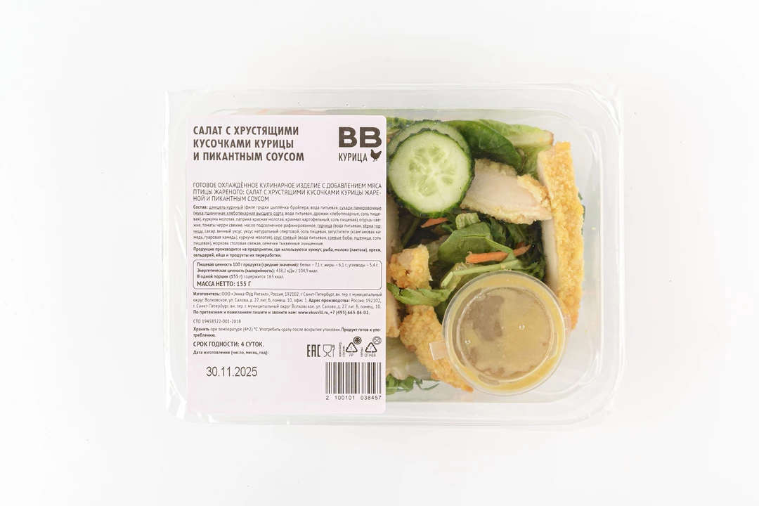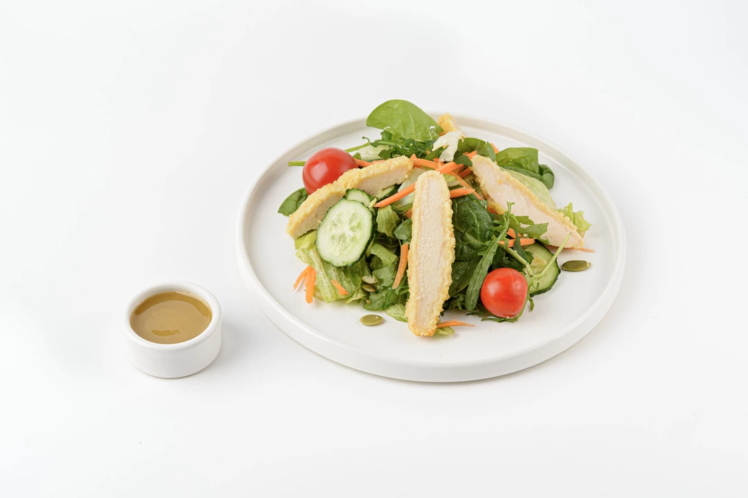 Салат с хрустящими кусочками курицы и пикантным соусом