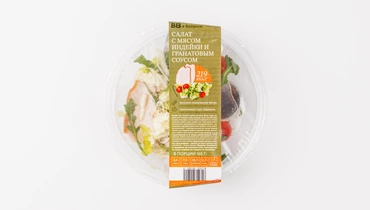 Блюдо с восточным колоритом: наршараб — азербайджанский соус из гранатового сока и специй. Его кисло-сладкий вкус прекрасно аккомпанирует нежной индейке су-вид в сочетании с овощами и зеленью.