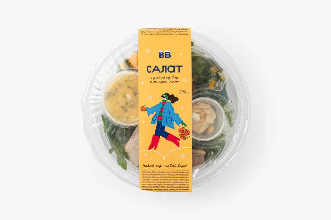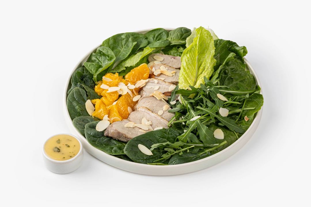 Этот необычный салат легко может дать старт новогоднему настроению. Мы соединили сочную утку су-вид, яркие маринованные мандарины и свежую зелень, чтобы создать особенное сочетание для праздничной атмосферы. Утку готовим бережно, при низкой температуре, чтобы сохранить её мягкость. Листья романо, шпината и руколы создают зелёную основу, а лепестки миндаля добавляют хруст и тёплый ореховый оттенок. Объединяет все компоненты соус на апельсиновом соке с базиликом и ноткой шрирачи, придавая лёгкую пикантность. Такое блюдо словно создано для зимы: когда за окном темнеет рано, а в доме пахнет мандаринами и ожиданием праздника.