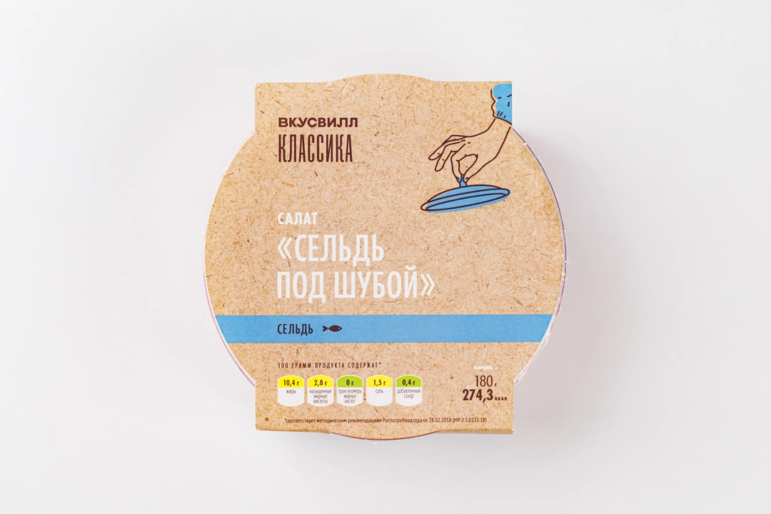 Готовый салат из филе сельди, свеклы, моркови, картофеля и яйца, заправленный домашним майонезом. Все ингредиенты аккуратно выложены слоями, как и требует классическая рецептура «Сельди под шубой». Салат приготовлен из свежих и качественных ингредиентов. Без консервантов и усилителей вкуса. Одобрено поваром «ВкусВилл».