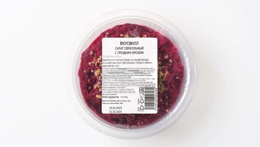 Классический салат из сочной отварной свёклы с натуральным майонезом, дополненный пикантным чесночком и дроблёным грецким орехом. Его можно подать просто так, вместе с гарниром или в роли закуски — на ломтике аромтатного ржаного хлеба.