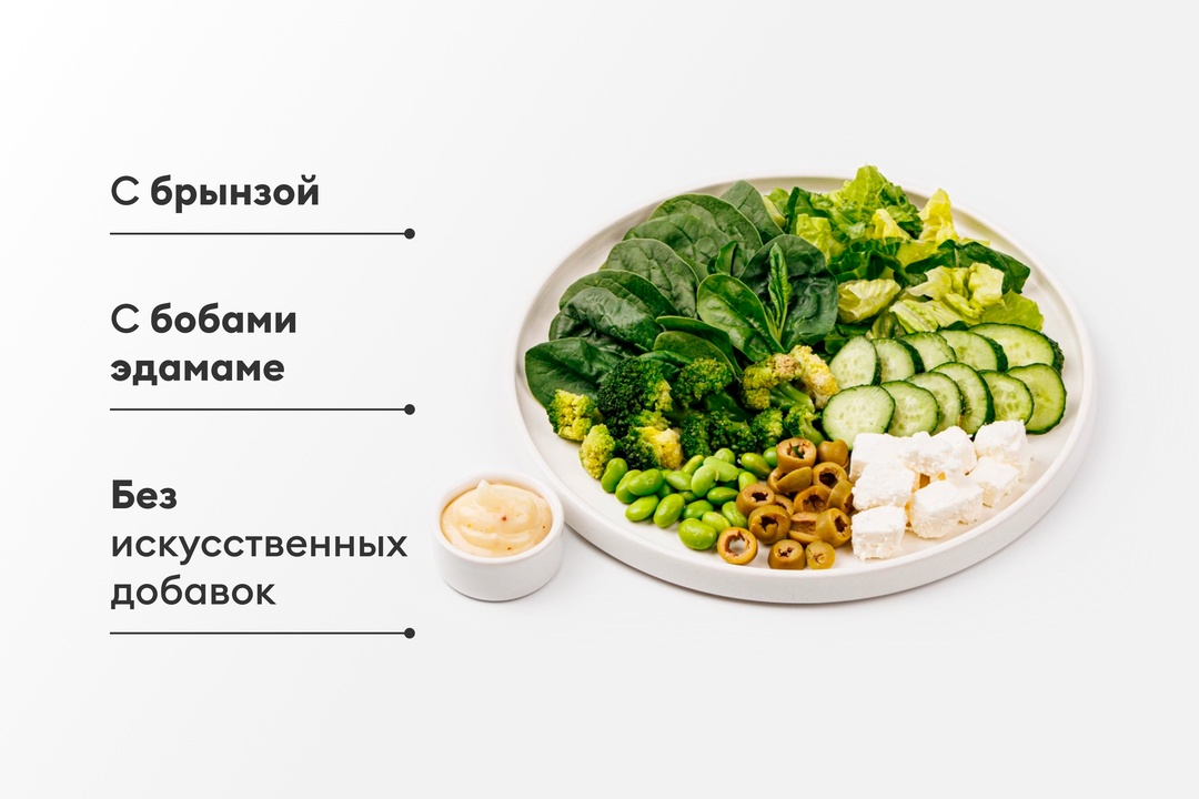 Салат "Зеленый" с брынзой, эдамаме и медово-горчичным соусом