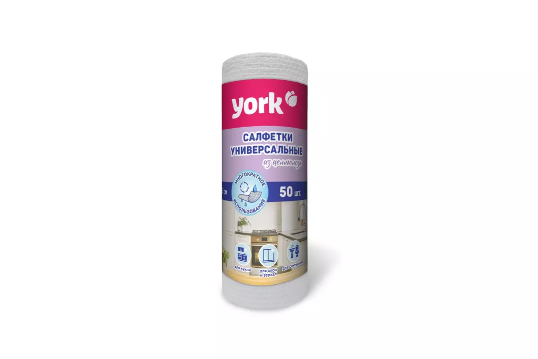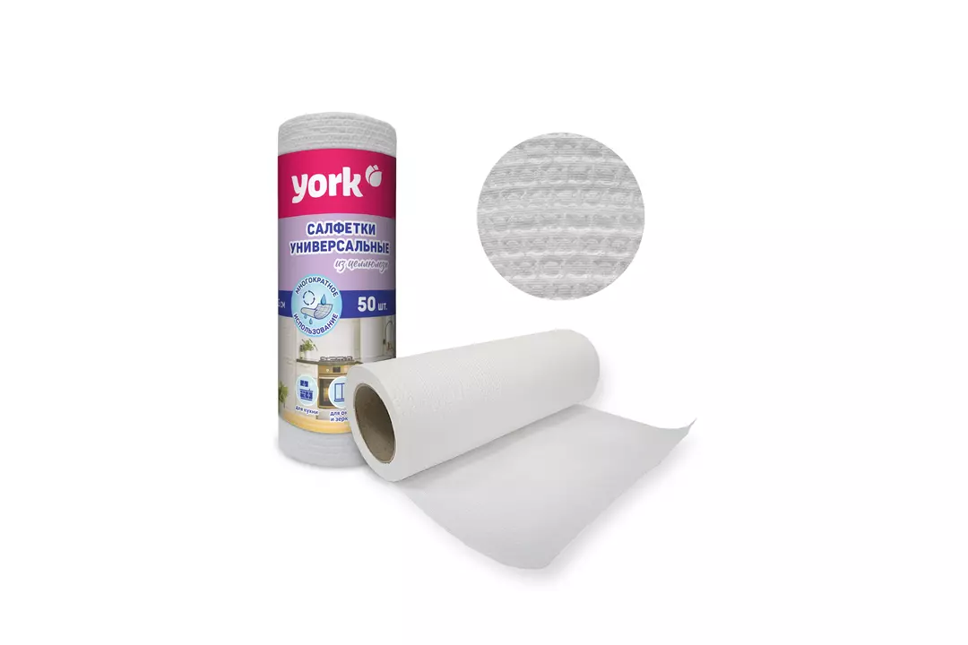 Салфетка хозяйственная York целлюлозные многоразовые в рулоне 25х25см 50 шт / Супермаркет