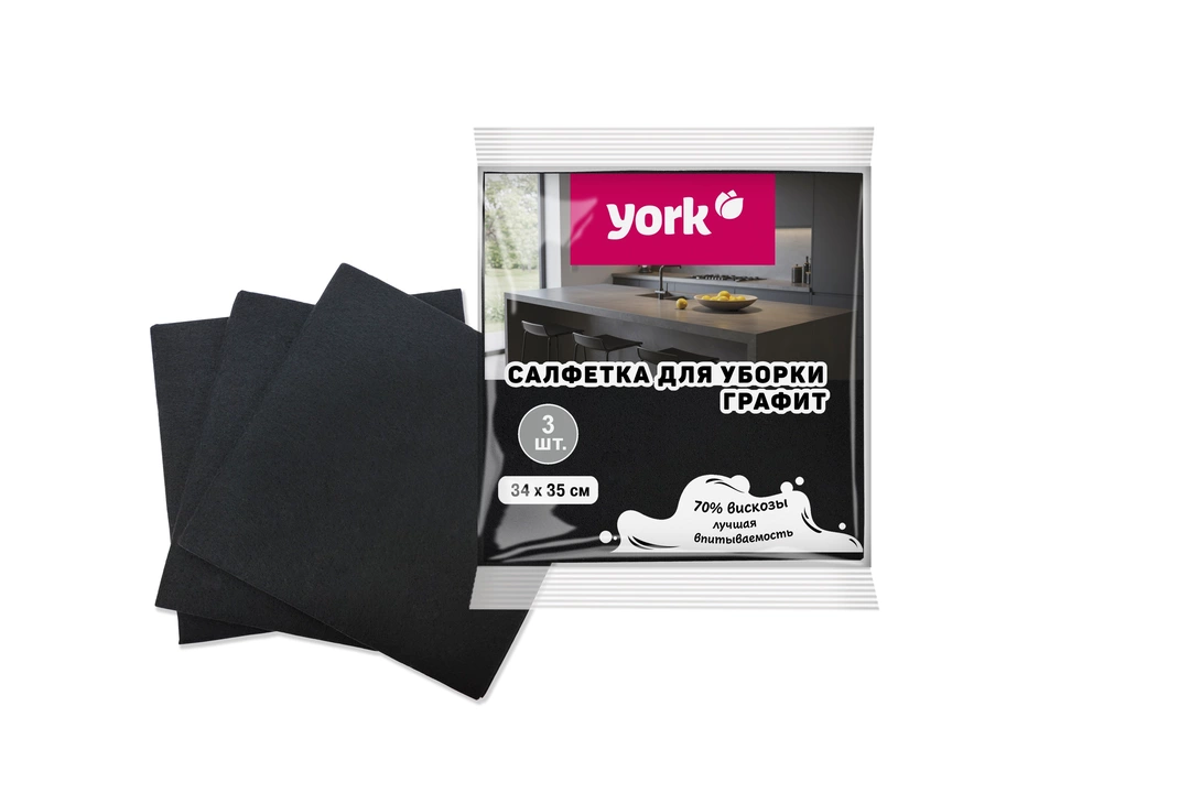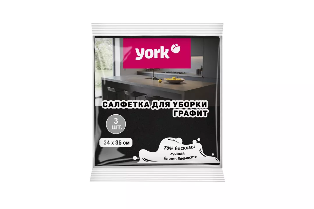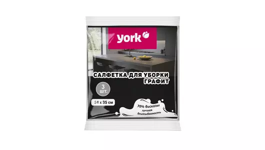 Салфетка хозяйственная York вискозная графит 34х35см 3 шт / Супермаркет