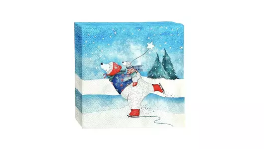 Салфетки бумажные Art Bouquet Медведи на катке 3-слойные 33 см 20 л / Супермаркет