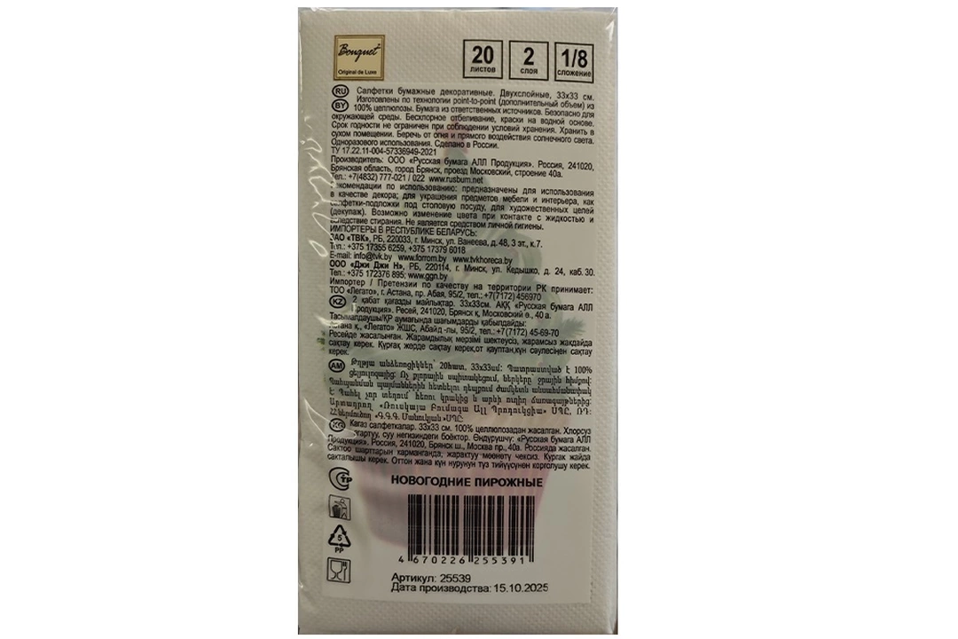 Салфетки бумажные декоративные для украшения праздничного стола. Страна-производитель Россия