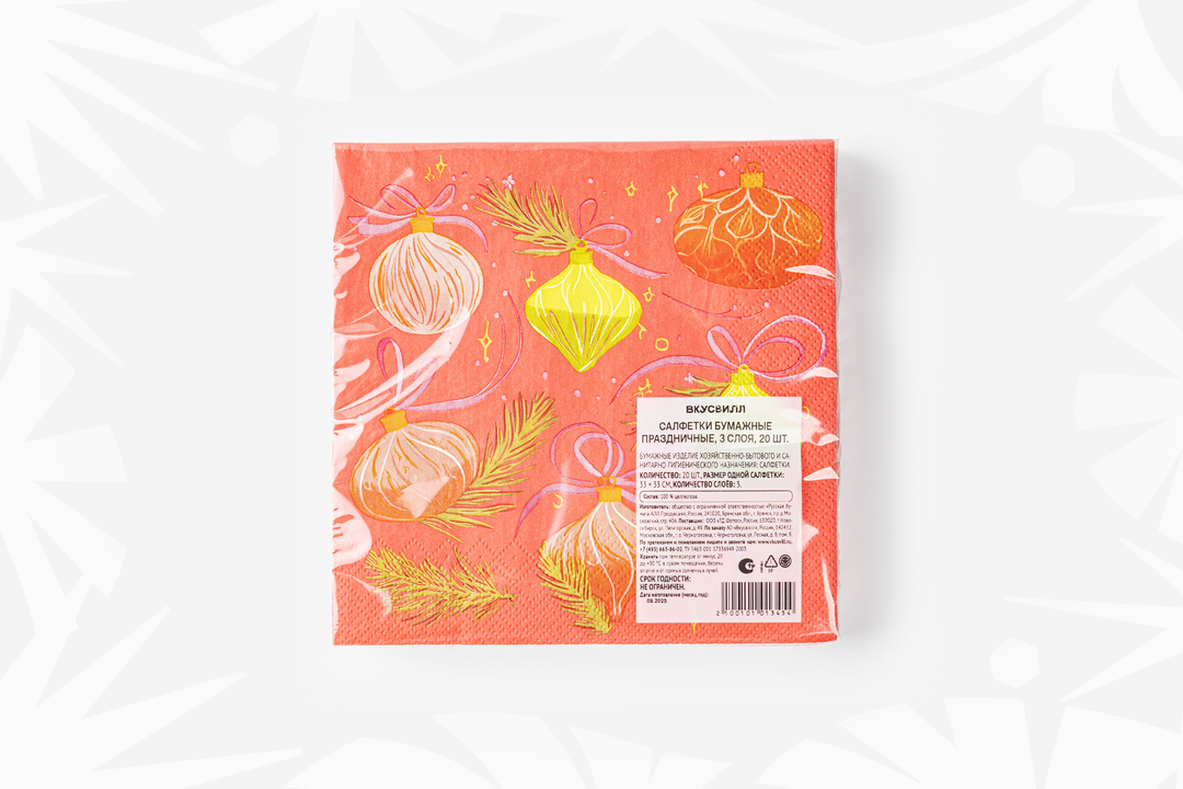 Салфетки бумажные праздничные 3 слоя, 20 шт