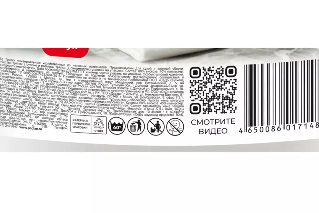 Салфетки хозяйственные Paclan в рулоне 70л/рул 25х35см / Супермаркет