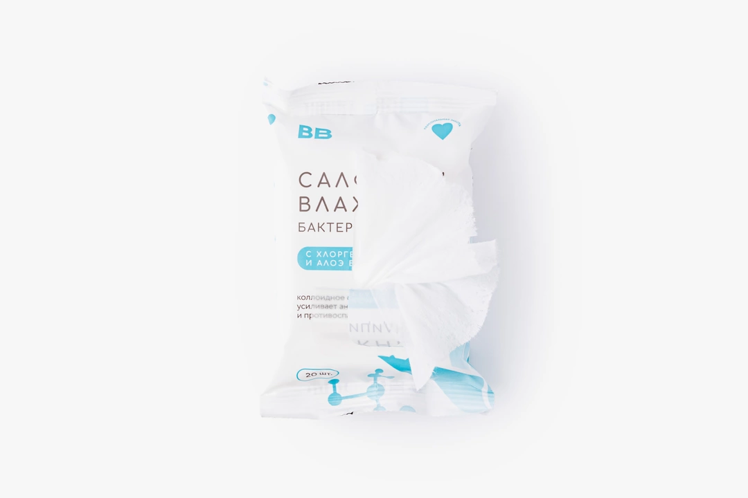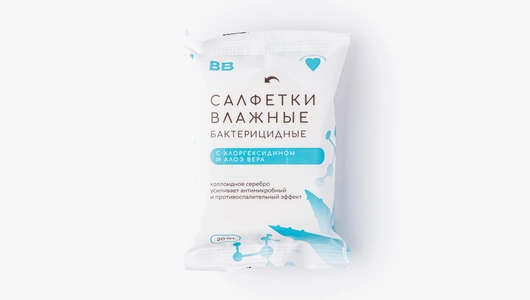Влажные салфетки с пантенолом и растительными экстрактами: алоэ и ромашки. Разработаны для мягкого очищения кожи. Бережно очищают кожу, смягчают её и успокаивают. Коллоидное серебро усиливает антимикробный и противовоспалительный эффект салфеток. Они подойдут как для дезинфекции рук, так и для обработки ранок, царапин и ожогов.