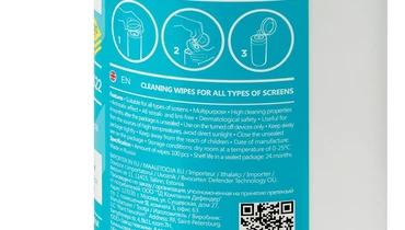 Подходит для всех типов экранов. Высокие очищающие свойства. Антистатический эффект. Без ворсинок и разводов. Дерматологически безопасно. Страна-производитель Россия