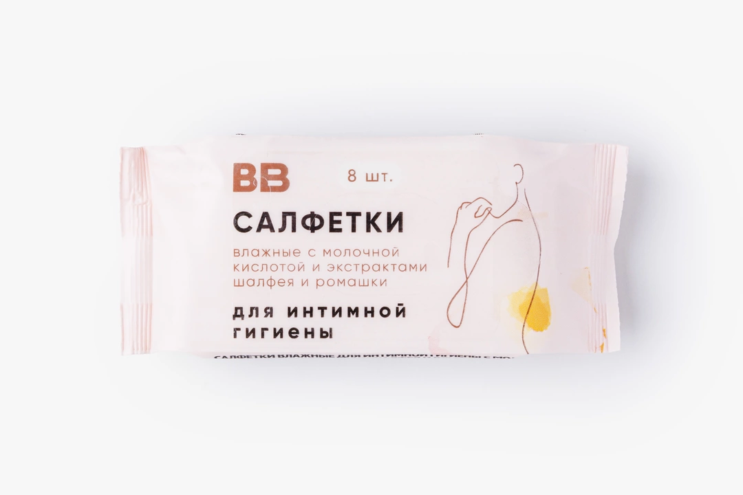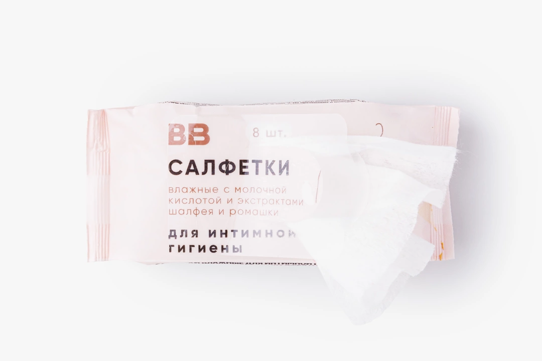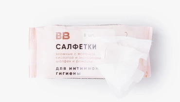 Салфетки влажные для интимной гигиены с молочной кислотой и экстрактами шалфея и ромашки, 8 шт