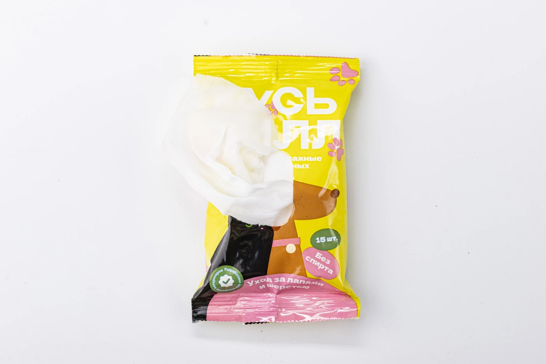 Салфетки влажные для животных "Уход за лапами и шерстью", 15 шт.