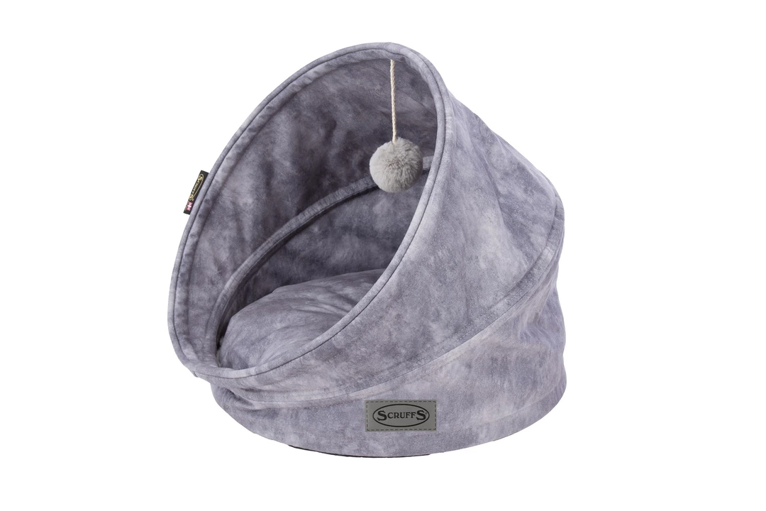 SCRUFFS Лежанка для кошек "Kensington Cat Cave", экозамша, серый, 44x44x48см (Великобритания)