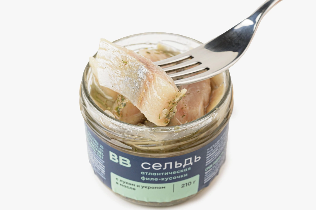 Аккуратные кусочки филе атлантической сельди в заливке из подсолнечного масла с сушёным луком и укропом. Более светлое и нежное мясо по сравнению с тихоокеанской сельдью обладает почти сливочным вкусом, который дополняется травяными нотками укропа. Подходит для бутербродов на ржаном хлебе и как дополнение к отварному картофелю. Не содержит бензойной кислоты и усилителей вкуса. Могут встречаться мелкие косточки — мы зачищаем филе механически, без химических размягчителей.