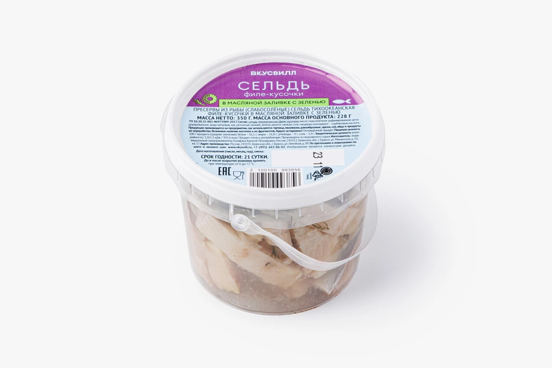 Сельдь филе-кусочки в масляной заливке с зеленью, 350 г