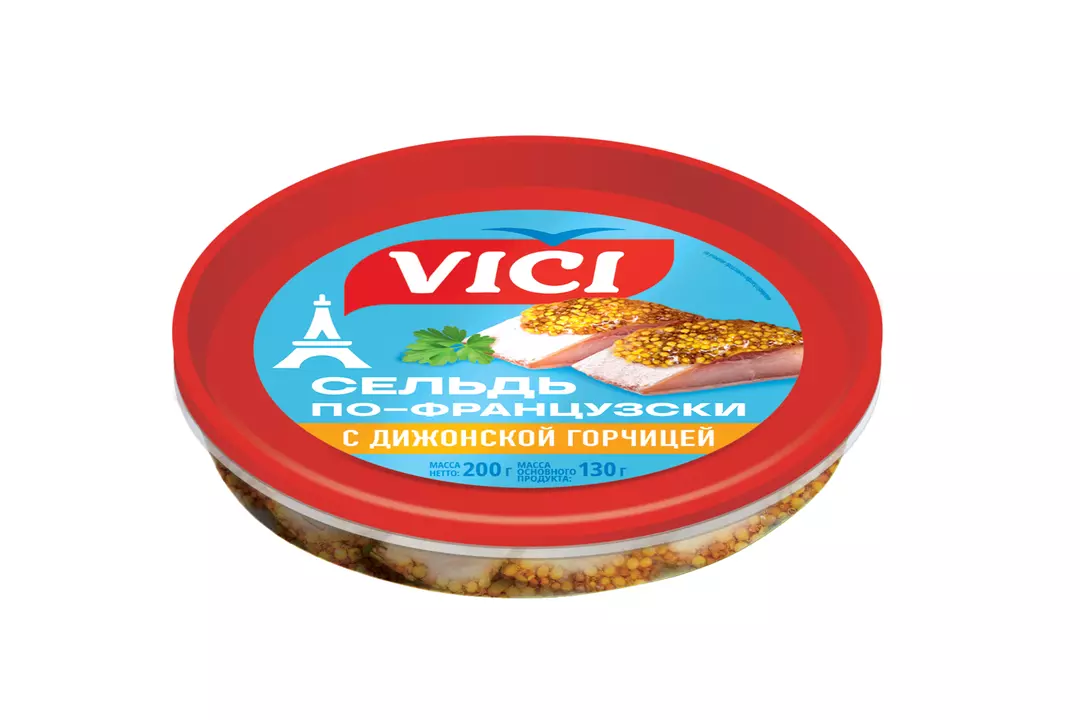 Сельдь филе-кусочки Vici По-французски 200 г Закуска, которая отлично подойдёт к картофелю, приготовленному любым способом. Или как дополнение к хлебу с маслом. Также с ней можно сделать закусочные канапе. Масса нетто 200 г Масса основного продукта - 130 г Страна производитель-Россия