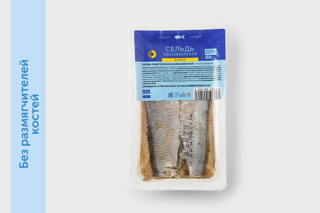 Масса рыбы — 160 г, остаток приходится на заливку. Нежное филе сельди, нарезанное крупными ломтиками и заправленное подсолнечным маслом. Для бутербродов на бородинском хлебе и в пару к отварному картофелю. Не содержит бензойной кислоты и вкусоароматических усилителей. Сохранить продукт помогает сорбат калия — природный консервант, который обладает антимикробными свойствами и не накапливается в организме. Иногда в филе могут попадаться мелкие косточки, ведь мы зачищаем их механически, без химических размягчителей.
