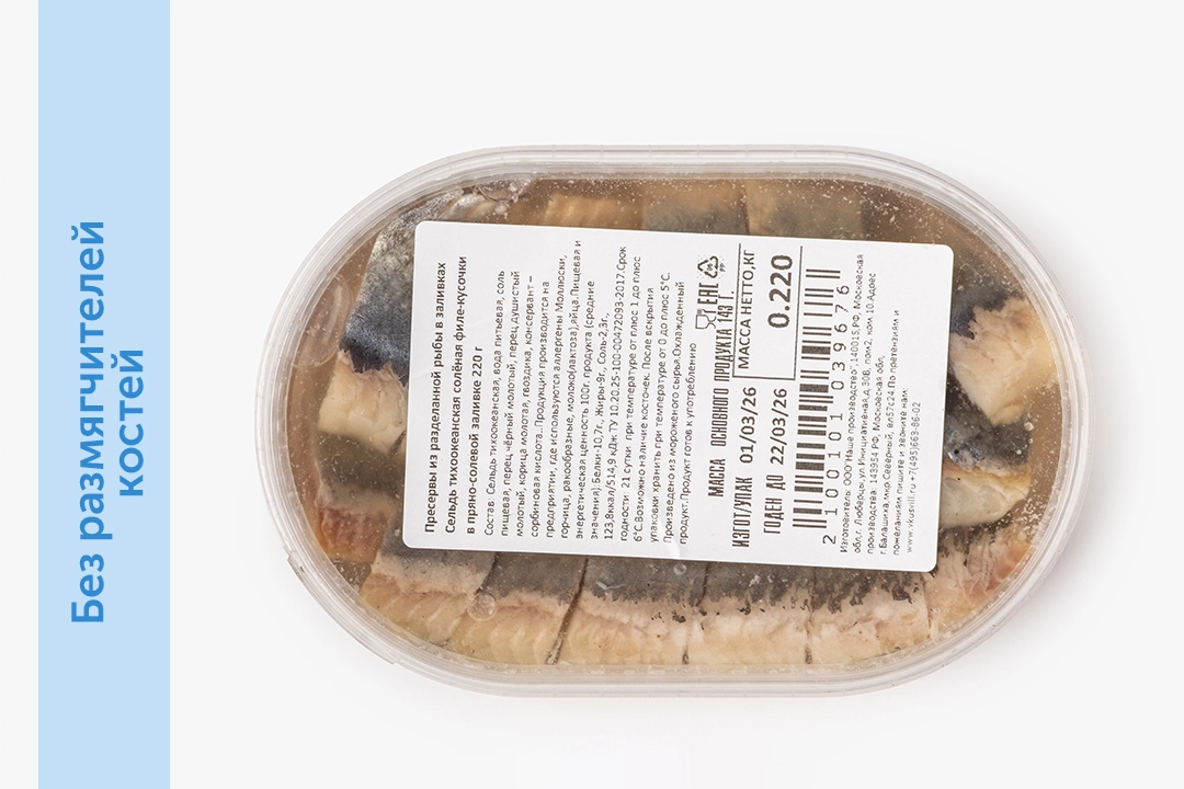 Нежное филе тихоокеанской сельди уже нарезано удобными кусочками. В качестве пряного акцента — немного корицы и гвоздики. Подходит для бутербродов на бородинском хлебе и в пару к отварному картофелю. Не содержит масла, бензойной кислоты и вкусоароматических усилителей. Сохранить продукт помогает сорбиновая кислота — природный консервант, который обладает антимикробными свойствами и не накапливается в организме. Мы зачищаем филе без химических размягчителей, поэтому в рыбе могут оставаться мелкие косточки.