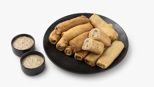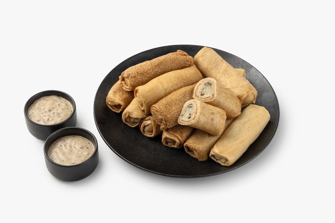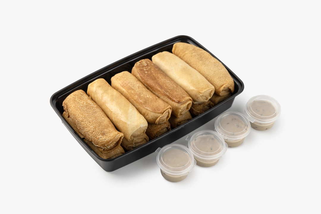 12 блинчиков из растительных ингредиентов с картофельно-грибной начинкой. Тесто на воде получается тонким и эластичным, с нейтральным вкусом. Мягкий картофель дополнен шампиньонами и луком для сытности и пикантности. Кунжутная заправка на основе майонеза на гороховом белке придаёт начинке ореховый оттенок. Блинчики особенно оценят те, кто предпочитает растительное меню. Они разнообразят рацион и станут аппетитным вариантом для семейного завтрака или полдника. Продукт приедет к вам горячим и готовым к подаче.
