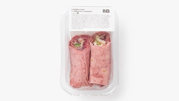 Свекольный лаваш делает этот ролл не только ярким, но и очень аппетитным. Мягкая тонкая лепёшка бережно удерживает начинку. А внутри — сочная индейка су-вид с лёгким ароматом паприки и чеснока, свежий айсберг, шпинат и сливочный соус на основе творожного сыра. Клюквенное пюре добавляет выразительный контраст: лёгкую кислинку и ягодную сладость, благодаря которым вкус получается многослойным и живым. Такой ролл подойдёт и для быстрого обеда, и для неспешного перекуса дома. Его удобно взять с собой в дорогу, на прогулку или съесть в офисе вместо привычного сэндвича, когда хочется побаловать себя чем-то праздничным.