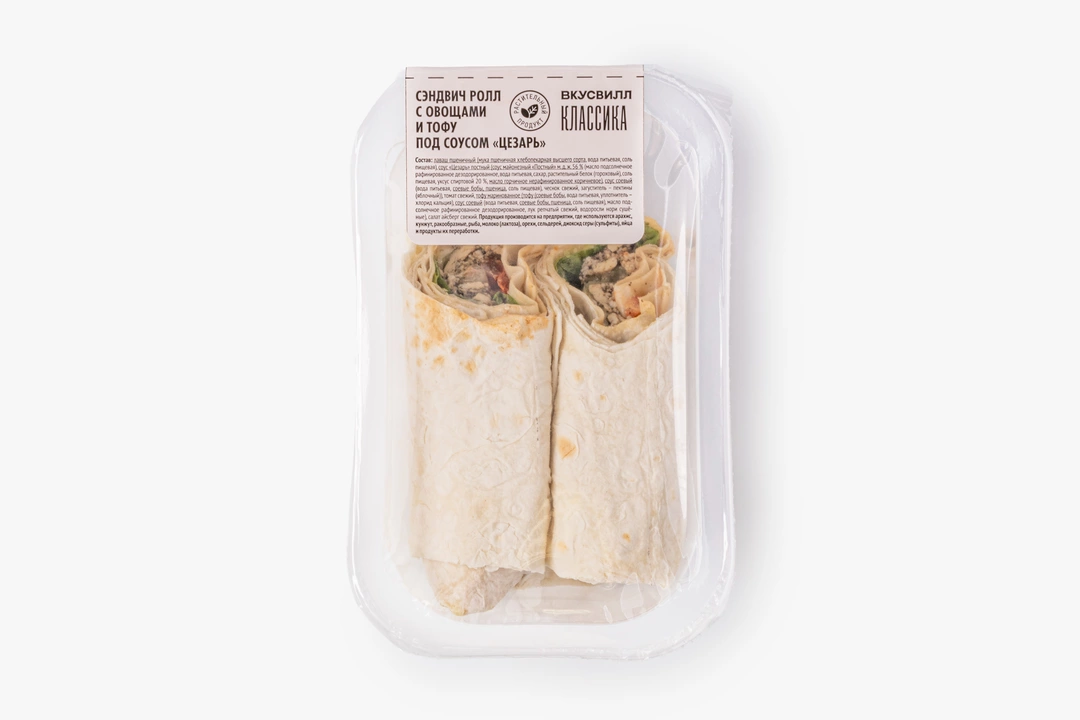 Сэндвич-ролл с растительными ингредиентами подойдёт для вегетарианского рациона. Состав проверен: нет усилителей вкуса, консервантов и искусственных ароматизаторов