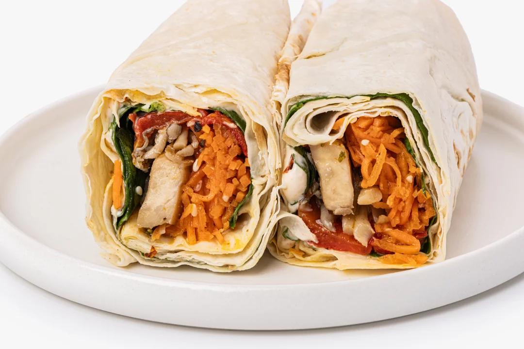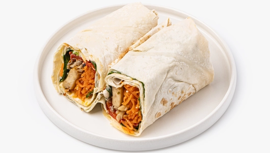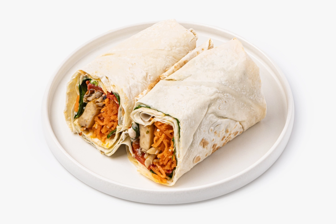 Сочный ролл с запечёнными вёшенками и овощами для сытного обеда вне дома. Мы замариновали грибы в соевом соусе с чесноком и тимьяном, затем запекли их, добавили морковь по-корейски, кунжут, печёный сладкий перец и свежий шпинат. Все ингредиенты мы заправили постным соусом с нотами традиционного корейского соуса кимчи и копчёной паприки и завернули в лаваш. Ролл станет настоящей находкой для тех, кто придерживается растительного рациона и ценит классическую азиатскую кухню.