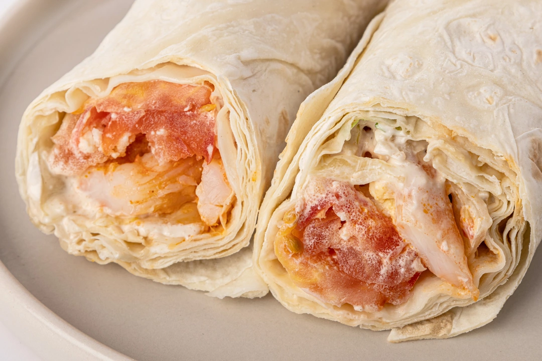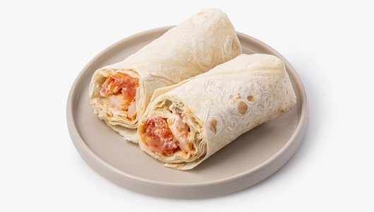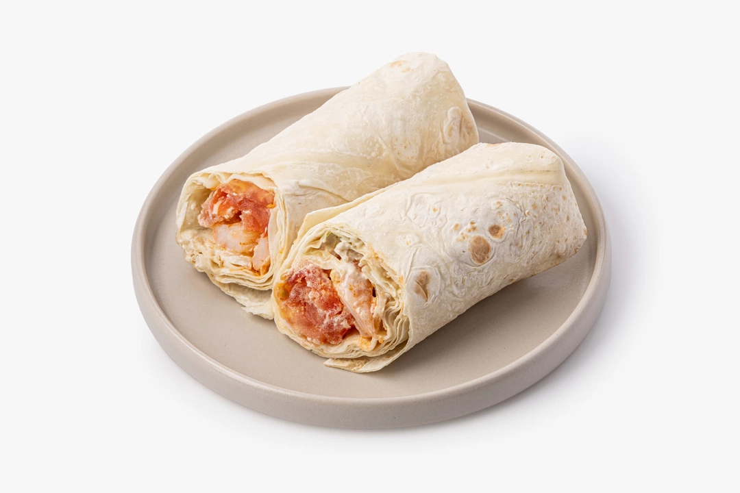 Этот сэндвич-ролл — удобная версия любимого ресторанного салата. Для начинки мы запекли креветки с чесноком и паприкой и дополнили их свежими томатами, хрустящим айсбергом и варёным яйцом в маринаде. А классический соус «Цезарь» и тёртый сыр — то, что делает этот вкус узнаваемым. Начинку мы аккуратно завернули в пшеничный лаваш, чтобы ролл было удобно держать в руках и есть даже на ходу. Такой вариант подойдёт для быстрого обеда или перекуса, когда хочется знакомого вкуса, но в более лёгком формате.
