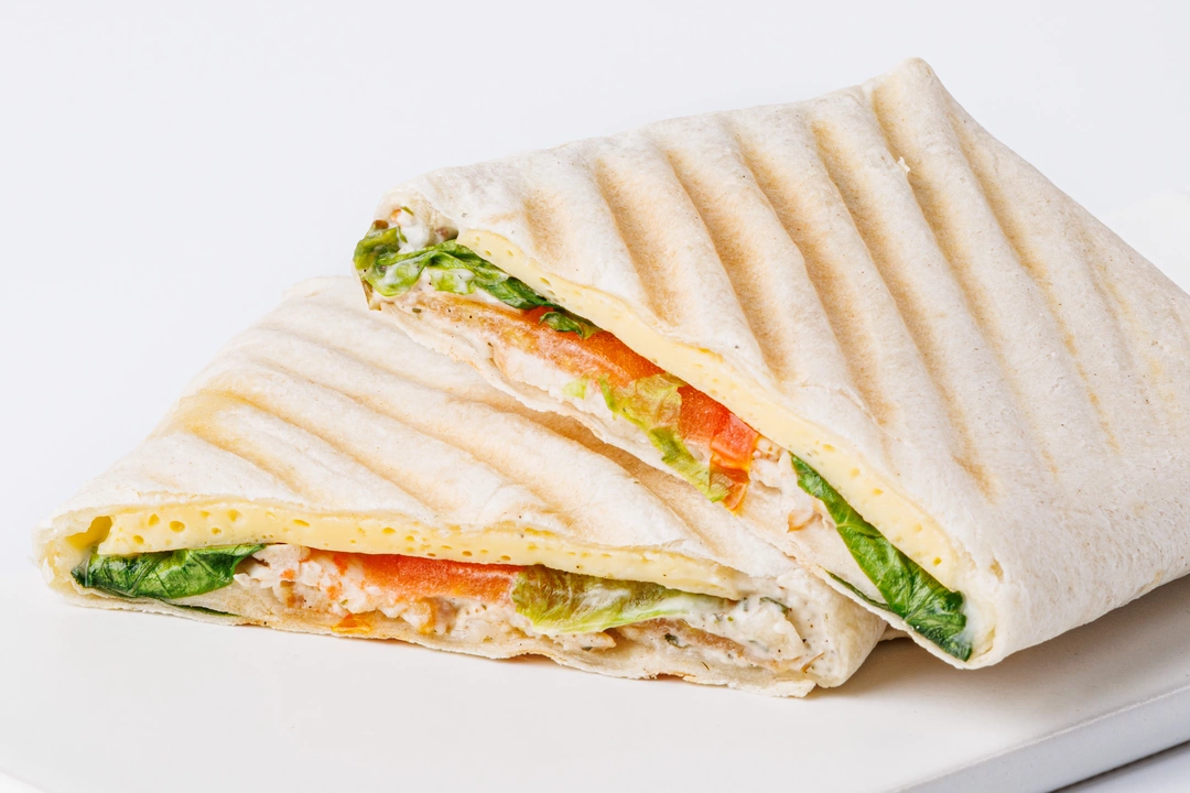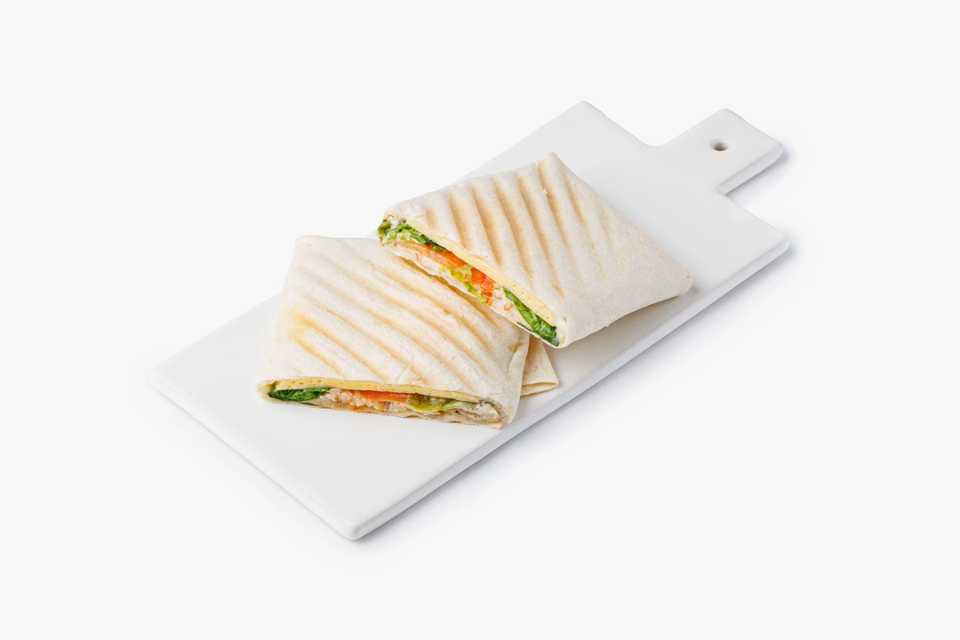 Сэндвич-ролл в тортилье с омлетом, курицей и соусом "Ранч", кафе