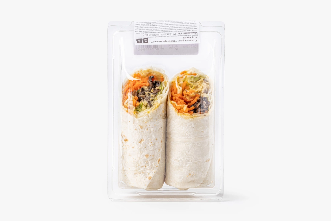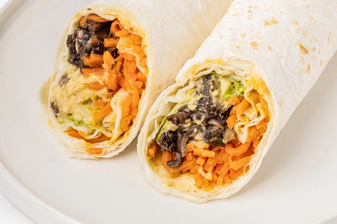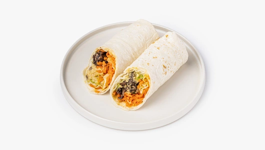 Лёгкий ролл из пшеничного лаваша с овощной начинкой для быстрого перекуса. Внутри нежный хумус из нута с кунжутом, сытные жареные шампиньоны и пряная корейская морковь. Хрустящие листья салата и огурцы добавляют блюду свежий оттенок. Ролл удобно взять с собой в дорогу или на прогулку, ведь его не нужно разогревать. Он напоминает о популярных восточных закусках с их яркими и насыщенными вкусами. Продукт не содержит ингредиенты животного происхождения.