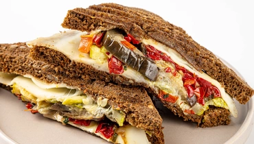 Сэндвич с овощами гриль, сулугуни и соусом песто, кафе