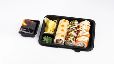 Яркий и аппетитный мини-сет из трех видов роллов (по 4шт.): Лава ролл с угрем в жареном нори (ролл с начинкой из рубленого копченого угря, хрустящего огурца и нежного творожного сыра, обваленный в жареном нори с кунжутом, сдобренный пряными фирменными соусами и перьями зеленого лука), Аляска ролл (ролл с пикантной остринкой за счет острого соуса шрирача, с начинкой из японского отварного риса, слабосоленого лосося, нежного творожного сыра и свежего огурца, обваленный в кунжуте), Лайт фила ролл с креветкой под васаби соусом (ролл с начинкой из отварной креветки, творожного сыра и свежего огурца, под ломтиками слабосоленого лосося, сдобренный соусом васаби-лайм). Комплектуется с соевым соусом, маринованным имбирем, васаби.