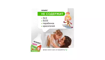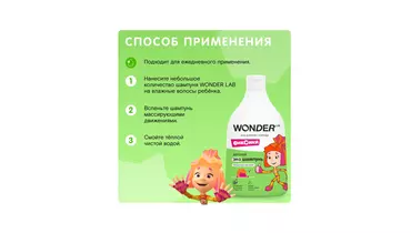 Детский шампунь WONDER LAB превратит купание вашего малыша в вечеринку с ароматом сочных и сладких ягод. Яркий дизайн привлечет внимание малыша, а мягкая формула поможет без неприятных впечатлений сформировать привычку мыть голову.  Мягкая пенка экошампуня бережно очищает волосы и кожу головы, а безопасный состав без SLS, SLES, парабенов и красителей подходит с первых дней жизни и не вызовет аллергии. Подходит для ежедневного использования. После купания волосы малыша мягкие и блестящие, без шелушения кожи и других неприятных ощущений. В основе шампуня для малышей - инновационный компонент Biomicrogel, который сделан из овощей и фруктов. Благодаря этому компоненту, средства WONDER LAB безопасны для человека, не вредят окружающей среде, не содержат токсичных компонентов и разлагаются на 98% за 1 день. Страна производитель-Россия