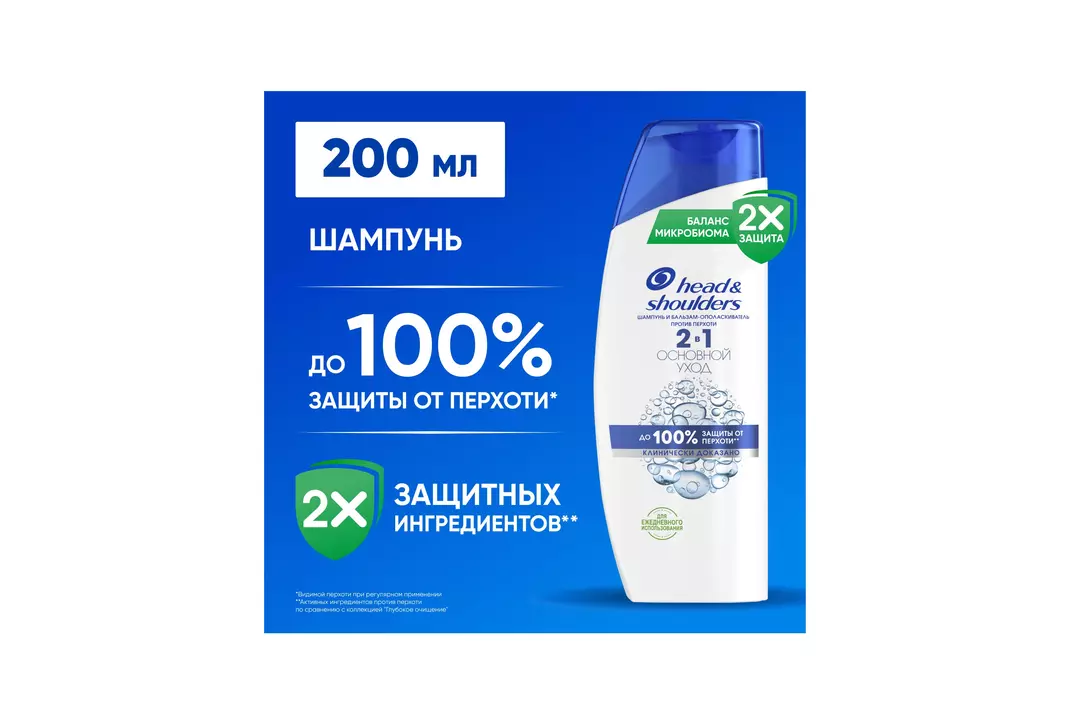Шампунь и бальзам-ополаскиватель для волос Head&Shoulders 2в1 Основной Уход 200 мл
