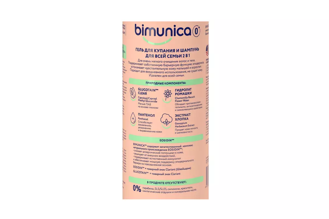 Шампунь и гель для купания детский Bimunica Для всей семьи 0+ 500 мл