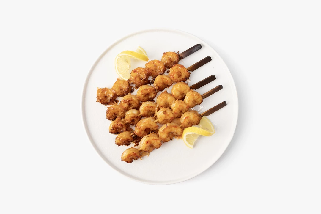 Ароматные шашлычки из аргентинских креветок для фуршета или праздничного стола. Сначала мы замариновали креветки в соевом соусе с чесноком и орегано, чтобы они получились пикантными и сочными, а потом зажарили. Добавили дольки лимона, чтобы вы могли сбрызнуть морепродукты соком перед едой. Шашлычки подойдут к лёгкому гарниру из отварного риса или тушёных овощей, их также можно подавать в качестве самостоятельной закуски. Продукт продаётся на развес.