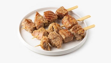 Кусочки тунца замаринованы в соевом соусе с лимонным соком и чесноком и посыпаны семенами кунжута. Шашлычки можно приготовить на гриле, в духовке или на сковороде — они хорошо прожариваются и сохраняют сочность. Подайте их на стол со свежими овощами, отварным рисом или лёгким салатом и соусами на основе йогурта или сметаны. Это быстрое решение для обеда или ужина, когда хочется попробовать что-то новое из привычных ингредиентов.