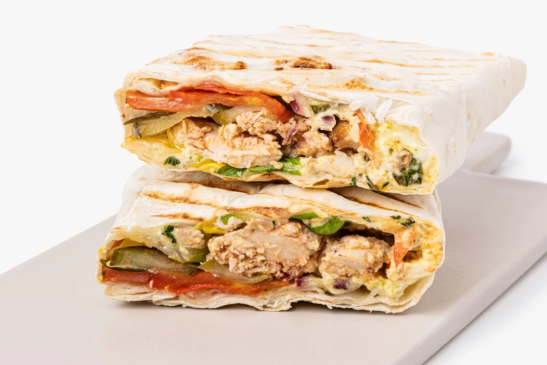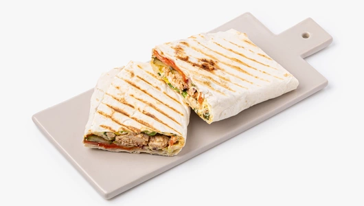 Состав Лаваш пшеничный (мука пшеничная хлебопекарная высшего сорта, вода питьевая, соль пищевая), филе куриное запеченное (филе грудки куриное, лук репчатый свежий, томаты свежие, масло подсолнечное рафинированное дезодорированное, соль пищевая, перец черный молотый), соус барбекю (кетчуп томатный (вода питьевая, томатная паста (массовая доля растворимых сухих веществ 9%), сахар, соль пищевая, регуляторы кислотности (уксусная кислота, молочная кислота), смесь специй "Европейская" (корица молотая, экстракт корицы, экстракт перца чили, экстракт мускатного ореха, экстракт лука репчатого, экстракт сельдерея), сахар, уксус яблочный, паприка копченая молотая, соевый соус (вода питьевая, соевые бобы, пшеница, соль пищевая, сахар), лук репчатый сушеный молотый, чеснок сушеный молотый, соль пищевая, перец черный молотый)), соус чесночный (сыр сливочный м.д.ж. в сухом веществе 69% (молоко пастеризованное, сливки пастеризованные, соль пищевая, сычужный фермент животного происхождения, закваска термофильная и закваска мезофильная), майонез м.д.ж. 67% (масло подсолнечное рафинированное дезодорированное, вода питьевая, сахар, желток яичный жидкий, соль пищевая, уксус спиртовой, масло горчичное нерафинированное коричневое), укроп свежий (зелень), петрушка свежая (зелень), чеснок свежий, приправа «Хмели-Сунели» (кориандр молотый, шамбала молотая (пажитник), петрушка сушеная молотая, базилик сушеный молотый, чабер сушеный молотый, майоран сушеный молотый, куркума сушеная молотая, укроп сушеный молотый, мята сушеная молотая, перец сладкий красный молотый), перец черный молотый, соль пищевая), томаты свежие, огурцы маринованные (огурцы свежие, вода питьевая, соль пищевая, регулятор кислотности – уксусная кислота, куркума молотая), салат Романо свежий, перец красный свежий, лук репчатый красный свежий.