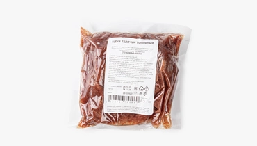 Говяжьи щечки томятся в течение 12 часов по технологии су-вид. Благодаря этому способу приготовления и высокому, в сравнении с тазобедренной частью, содержанию коллагена, мясо выделяет большое количество сока, который остаётся в упаковке. Блюдо не содержит добавленной воды и соусов: только сами говяжьи щёчки и сухие специи. У мяса нежнейшая текстура: волокна легко отделяются друг от друга и моментально тают во рту. Вкус у щёчки сбалансированный, с деликатной перчинкой, которая не перебивает звучание основного ингредиента. Щёчка превосходно подойдёт как для повседневного, так и для торжественного застолья. А чтобы её доготовить, вам нужно всего лишь отправить мясо в микроволновку и разогреть его на полной мощности в течение 2-3 минут.